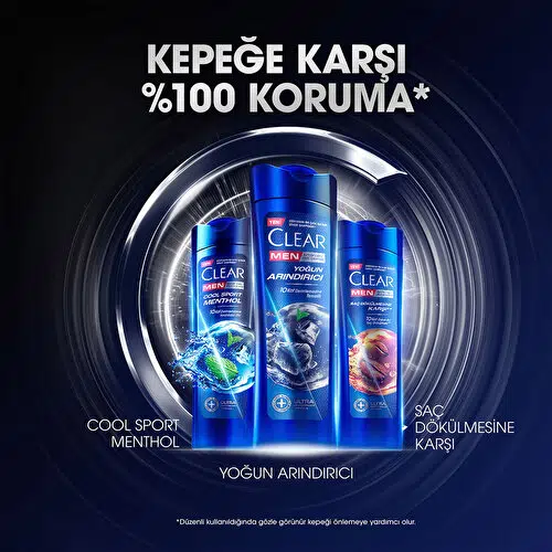 Erkeklerin saç derisi, yapısal olarak kadınlardan farklıdır. Bu farklılık, saç derisinin kepek, yağlanma ve kaşıntıya daha yatkın olmasına neden olur. Ancak Clear Men Yoğun Arındırıcı Kepeğe Karşı Etkili Şampuan, erkek saç derisi için özel olarak tasarlanmış bir formüle sahiptir. Baştan aşağı yenilenen özel formülü sayesinde, kepeğe karşı %100 koruma** sağlar ve saç derisini 10 kat derinlemesine arındırır. Dünyanın 1 numaralı erkek şampuanı* olan Clear Men, niasinamid ve kömür içeren yenilenen formülüyle kepeğe ve yağlanmaya karşı 10 kat derinlemesine temizlik sunar. Clear'ın klinik olarak kanıtlanmış bu kepek karşıtı formülü, düzenli kullanıldığında gözle görünür kepeği önlemeye yardımcı olur. Yenilenen Clear Men, saç bakımında devrim yaratmaya devam ediyor. Türkiye'de Clear kullanıcıları arasında yapılan tüketici testine göre kullananların %96'sı, Clear'ın saç derisindeki ferahlatıcı ve rahatlatıcı etkisini onaylıyor***. Kepeğe karşı etkili bir çözüm sunan ve saç derisini arındıran Clear Men Yoğun Arındırıcı Kepeğe Karşı Etkili Şampuan’ı deneyin. *Temmuz 2022 – Haziran 2023 Nielsen perakende endeksine göre raporlanan hacimsel satış verileri baz alınmıştır. **Düzenli kullanıldığında gözle görünür kepeği önlemeye yardımcı olur. ***Türkiye'de Clear kullanıcıları arasında yapılan tüketici testine dayanarak. Kullanım: Islak saç ve saç derisine uygulayın, saç derisine masaj yapın ve durulayın. En iyi sonucu almak için her gün kullanın. Gözle temas halinde bol suyla durulayın. Doğrudan güneş ışığından uzak, serin bir yerde saklayın. İçindekiler: Aqua, Sodium Laureth Sulfate, Cocamidopropyl Betaine, Sodium Chloride, Parfum, Sodium Benzoate, Dimethiconol, Piroctone Olamine, Citric Acid, Carbomer, Dimethicone, Menthol, Guar Hydroxypropyltrimonium Chloride, Sodium Hydroxide, PPG-9, Mica, Helianthus Annuus (Sunflower) Seed Oil, Acrylamidopropyltrimonium Chloride/Acrylamide Copolymer, Disodium EDTA, Glycerin, TEA-Dodecylbenzenesulfonate, TEA-Sulfate, Glycine, Niacinamide, Laureth-23, Poloxamer 407, Charcoal Powder, Phenoxyethanol, Laureth-4, PEG-4, Taurine, Xanthan Gum, Limonene, Linalool, Cl 77891.