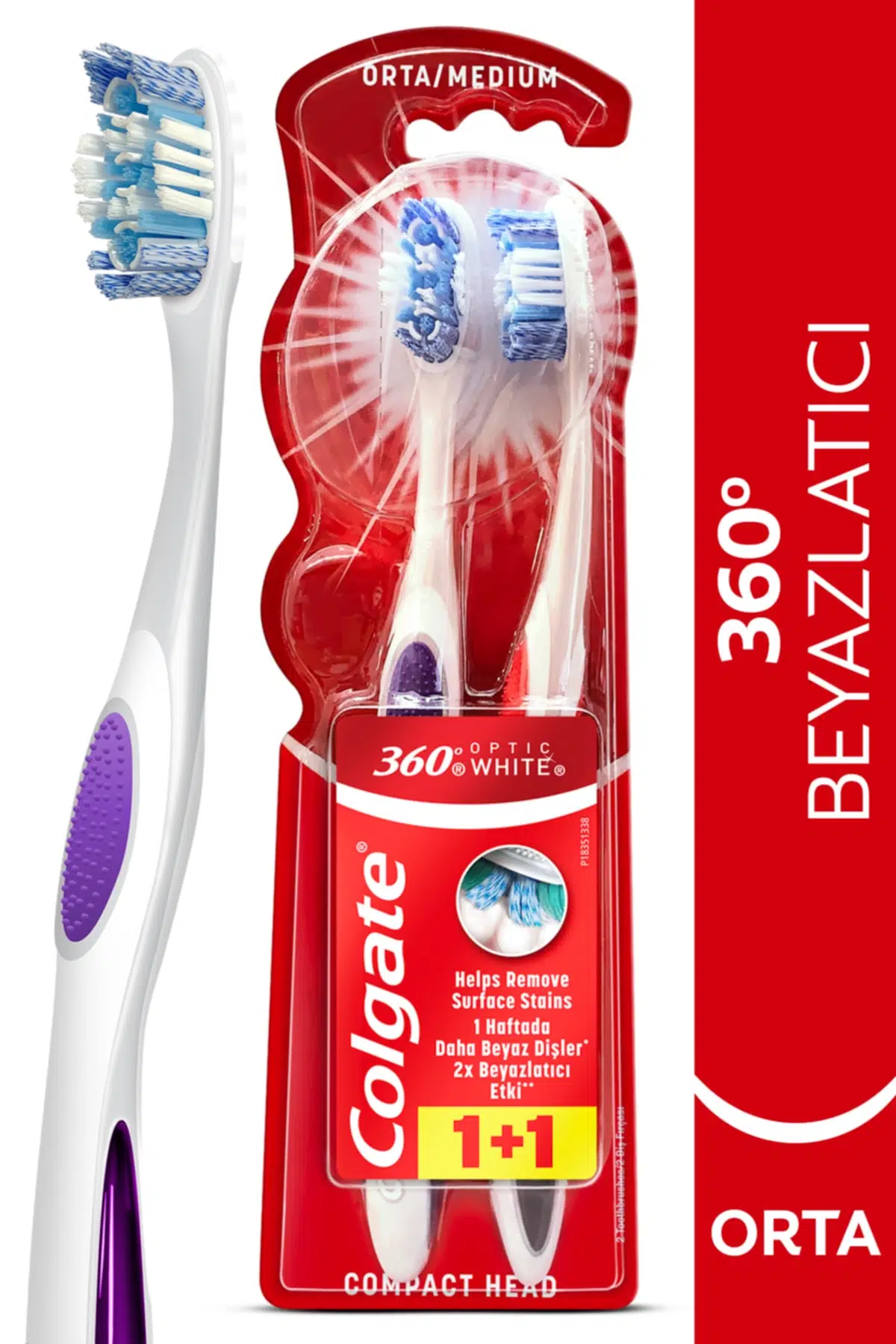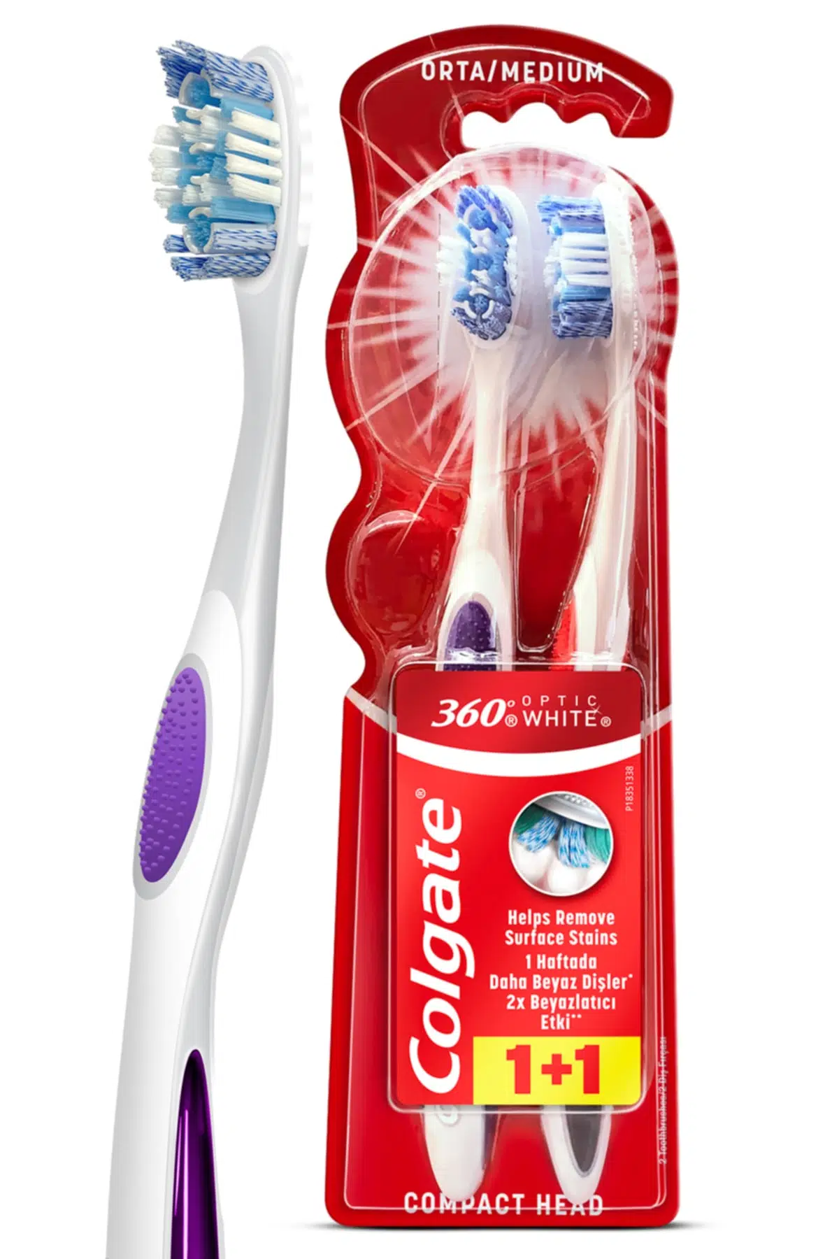 Colgate Optik Beyaz 360 Diş Fırçası Orta 1+1