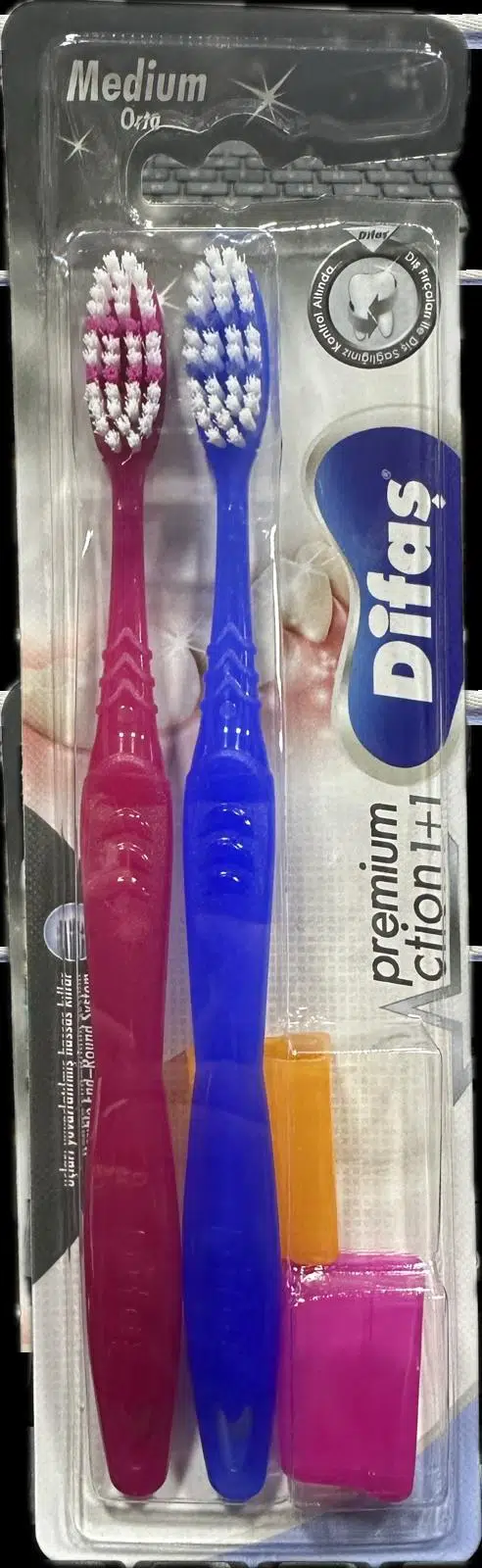 Difaş Premium Action Kapaklı Diş Fırçası Medium 1+1