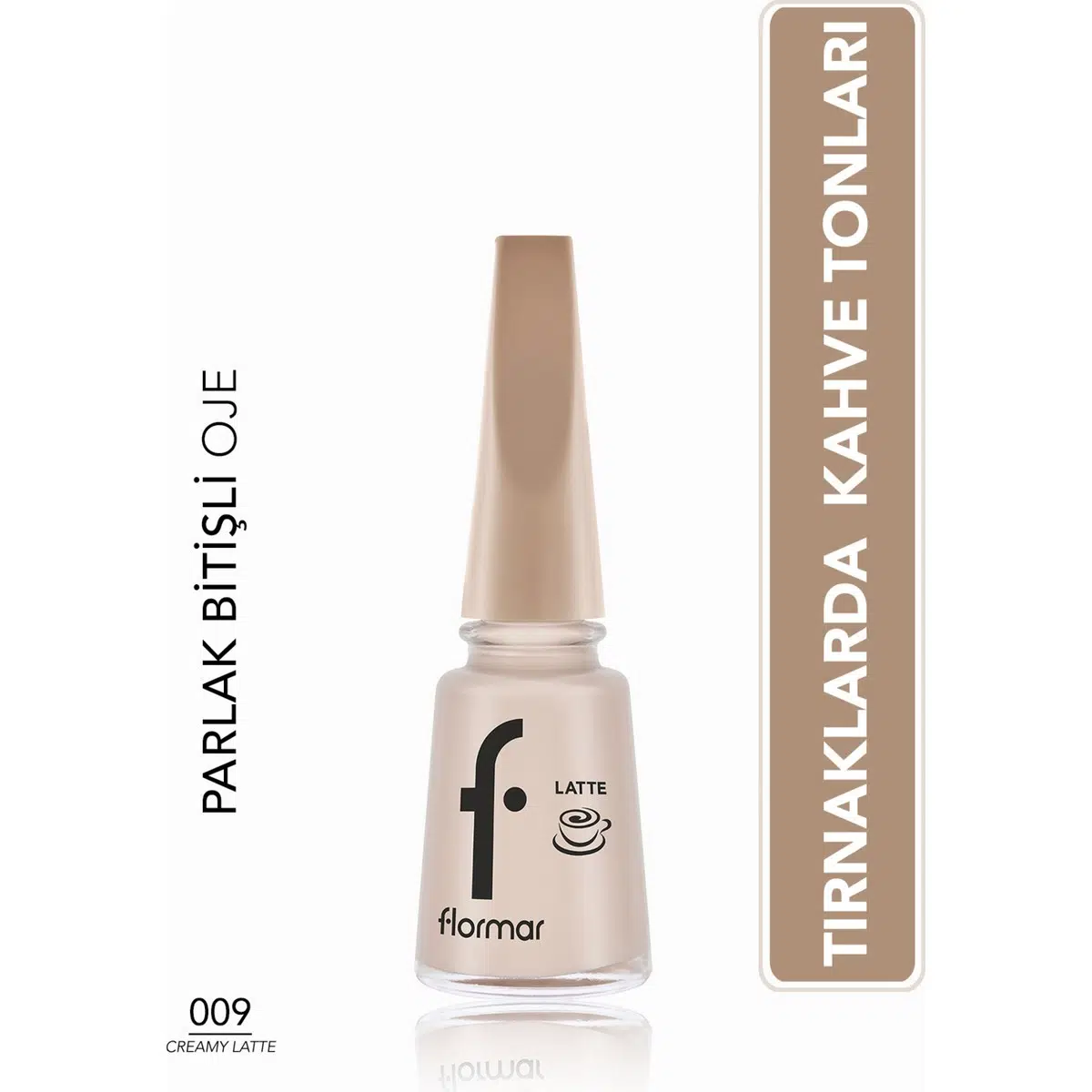 Flormar Latte Yüksek Pigmentli & Parlak Bitişli Kahve Tonlu Oje no:009