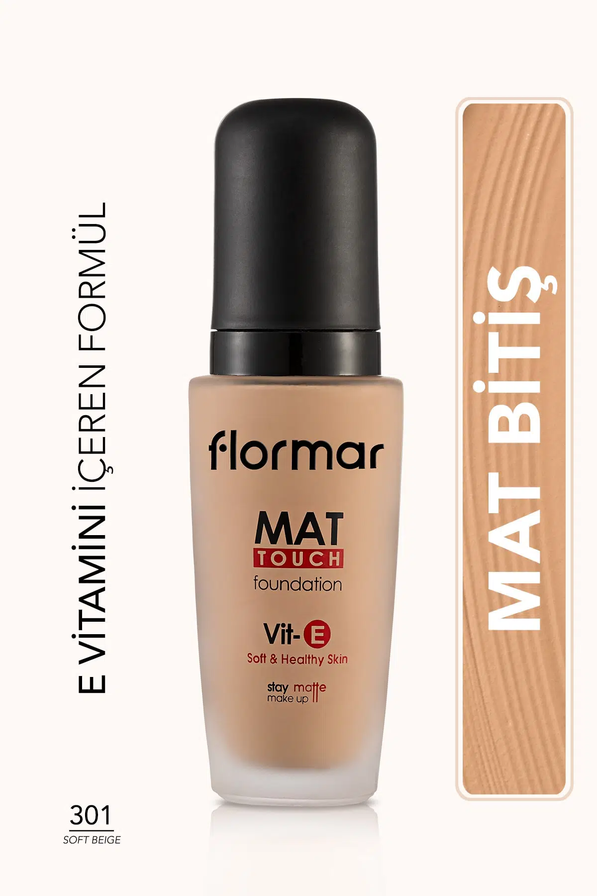 Flormar mat bitişli fondöten (soğuk alt ton) m301 soft beige, aydınlık ve eşit bir ten görünümü elde etmek için özel olarak formüle edilmiş bir fondöten çeşididir. Soğuk alt tonlu ciltlere uygun olan bu fondöten, mat bitişli formülüyle özellikle yağlı ve karma ciltler için idealdir. Mat bitişiyle t bölgesinde ve yanaklarda oluşan parlamaları kontrol altına almaya yardımcı olur.flormar mat touch fondöten, e vitaminiyle zenginleştirilmiş bir formüle sahiptir. Bu sayede cilt görünümünü eşit ve pürüzsüz bir hale getirirken cilde bakım da yapar. Flormar doğal bitişli fondöten e vitamini içeriği sayesinde cildin nem dengesini korumaya yardımcı olur. Pudralı ve yapay bir görünüm oluşturmaz. Pul pul ve kuru bir görünüm oluşmasının da önüne geçer.flormar yoğun pigmentli fondöten, ince yapısı sayesinde ciltte doğal bir duruş sağlar.