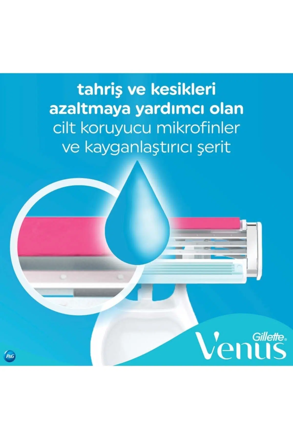 gillette venus3 tek kullanımlık bıçak ağızları ile pürüzsüz bir cildin ve daha az tahrişin (simply venus2'ye kıyasla) daha düşük tahriş olmasını sağlayın. • tıraş bıçakları 3 bıçaklı hareketli bir kafaya, pürüzsüz kayma için nemlendirici bir şeride ve yaraları ve kesiklerin azaltılmasına yardımcı olan koruyucu mikro çıkıntılara sahiptir. ;