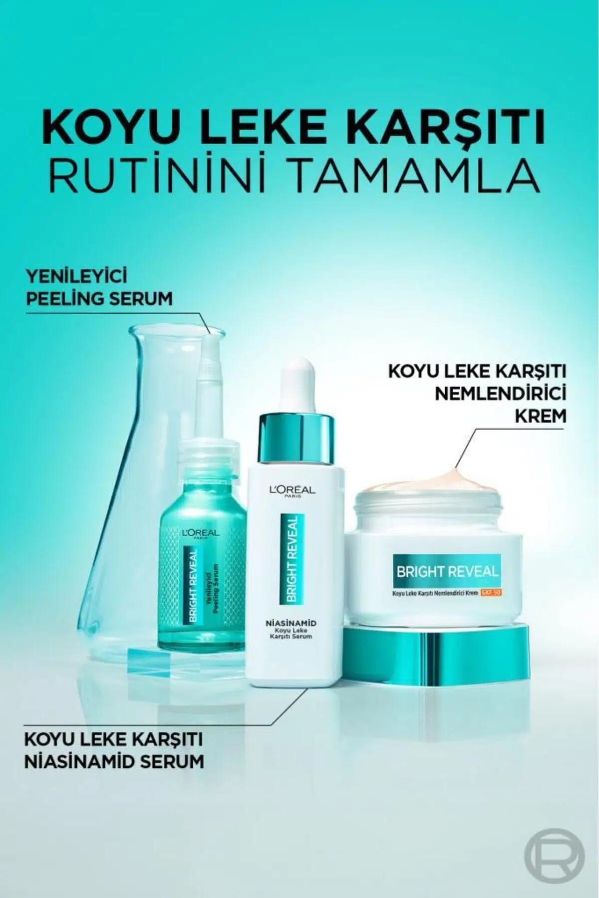 BRIGHT REVEAL SİVİLCE, GÜNEŞ, YAŞLANMA LEKELERİNDE ETKİLİ KOYU LEKE KARŞITI SERUM %10 NİASİNAMİD 30ML KOYU LEKE KARŞITI BAKIM İÇİN GÜÇLÜ ETKİN İÇERİKLER %7,5 NİASİNAMİD & %2,5 AMİNO-SÜLFONİK ASİT NİASİNAMİD Güneş ve yaşlanma lekeleri ile cilt kusuru izleri dahil tüm koyu lekelerin görünümünü azaltmaya yardımcı, aydınlatıcı içerik. AMİNO-SÜLFONİK ASİT Nazik peeling etkisi ile arındırmaya ve daha eşit bir cilt tonu açığa çıkarmaya yardımcı içerik. HASSAS CİLTLER İÇİN UYGUN RAHATLATICI DOKU - Yapışkan iz bırakmaz - Yağlı his bırakmaz - Komedojenik değildir - Makyaj ile uyumlu KLİNİK OLARAK KANITLANMIŞ ETKİ 1 HAFTADA En inatçı olanlar dahil tüm koyu lekelerin (cilt kusuru izleri, güneş lekeleri, yaşlanma lekeleri) görünümünü gözle görülür şekilde azaltır. Cilt daha aydınlık görünür. 1 AYDA Cilt görünümündeki olumlu gelişmeler devam eder. KULLANIM TAVSİYESİ SABAH VE AKŞAM UYGULAYIN 3-4 damla serumu, temiz yüz & boyun bölgenize uygulayın. Ardından nemlendiricinizi sürebilirsiniz. Sabahları minimum 30 faktör güneş koruyucu kullanın. Dekolte bölgesine ve ellere de uygulanabilir. Koyu leke karşıtı bakım rutininizi Bright Reveal Peeling Serum ve Koyu Leke Karşıtı UV Korumalı Fluid Krem ile tamamlayın.