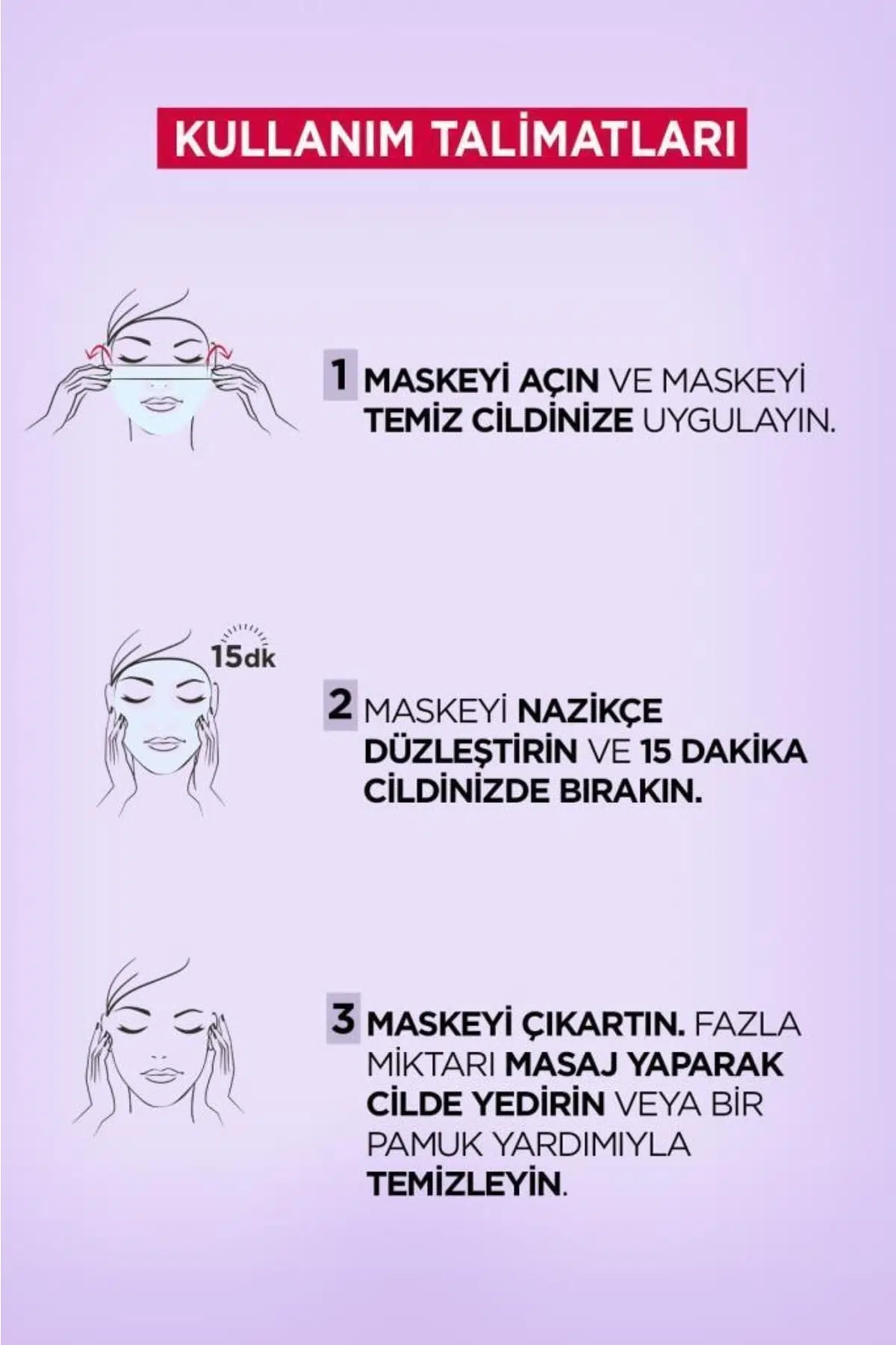 KONSANTRE SAF HYALURONİK ASİT: Cilt bakımının yıldız içeriği. Cildi dolgunlaştırmaya, pürüzsüzleştirmeye ve nemlendirmeye yardımcı olur. ULTRA İNCE KAĞIT MASKE TEKNOLOJİSİ: 0.4 mm ultra ince japon pamuğu dokusu. Cilde mükemmel şekilde uyum sağlayarak en ince çizgilere dahi ulaşır. Rahatlatıcı bir etki için yoğun serinletici his sağlar. BAĞIMSIZ BİR KURUM TARAFINDAN TEST EDİLMİŞTİR 1 Maske Sonra: Cilt nem ile dolgunlaşır. Daha ferah ve elastik bir görünüm kazanır. 3 Maske Sonra: Cilt daha pürüzsüz, aydınlık ve dinlenmiş görünür.