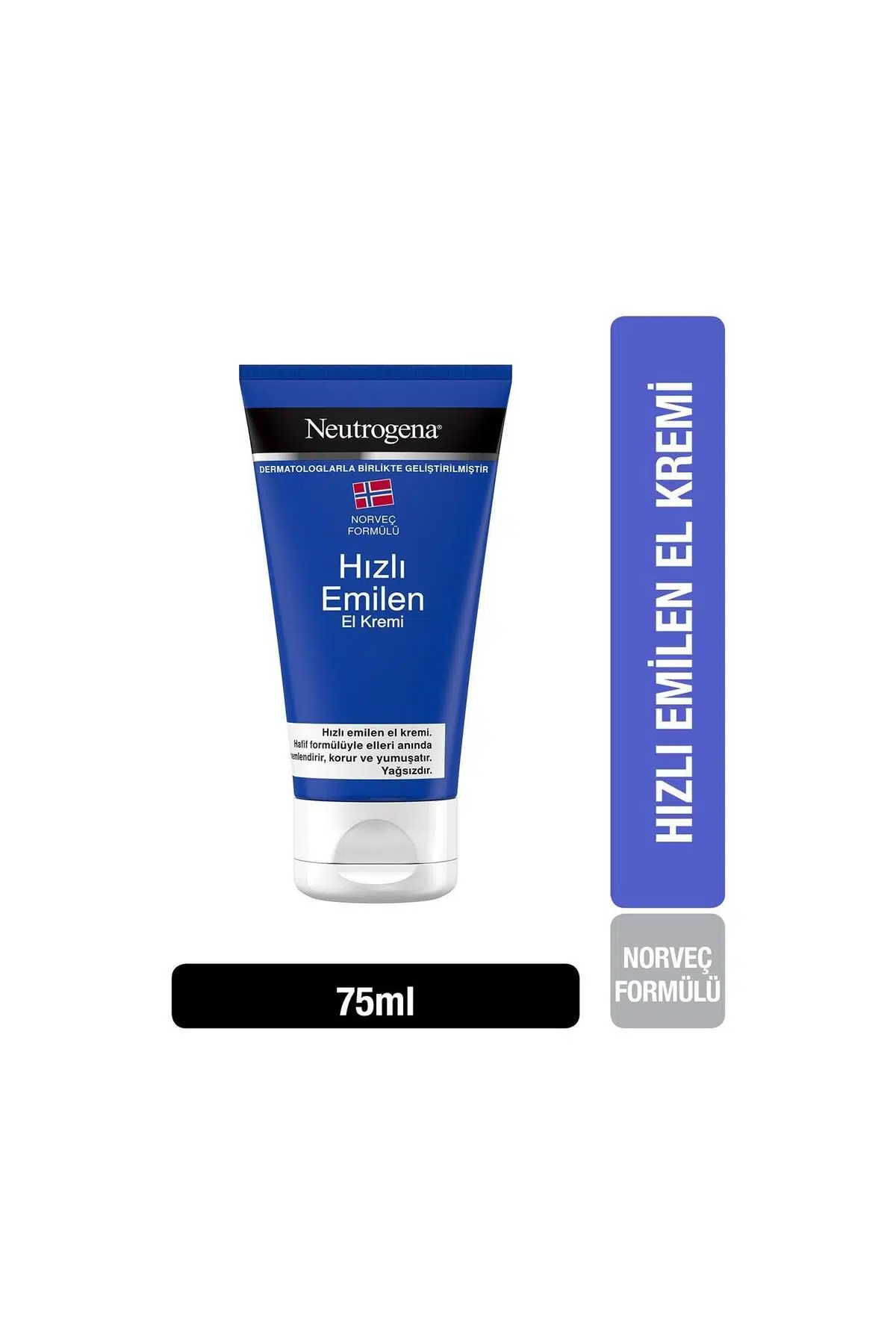 Neutrogena Norveç Formülü Hızlı Emilen El Kremi 75 Ml Cilt Tipi Tüm cilt tipleri için uygundur. ; Ürün Özellikleri Norveç formülü dünyadaki en sert ve en soğuk iklim koşullarına karşı cildi korumak amacı ile 40 yılı aşkın süre önce Norveç’te geliştirilmiştir. ; Bu ürün içeriği gliserin ile zenginleştirilmiş eşsiz yapısı ile cildi sararak en kuru ciltlere anında etkili ve uzun süre rahatlama hissi sağladığı 5 yıl boyunca yapılan klinik testler ile kanıtlanmıştır. ; Provitamin B5 ile zenginleştirilmiş Norveç formülü ile eller ve tırnaklar için mükemmel nemlendirici kremdir. ; Ürün Avantajları . ; Tırnakları 2 kat güçlendirmeye ve tırnak etlerini yumuşatmaya yardımcı olur. ; Elleri yoğun şekilde nemlendirir ve besler. ; En zor koşullarda bile elleri yumuşak ve pürüzsüz yapar. ; 24 saat etkilidir. ; Kısa zamanda yumuşak ve pürüzsüz görünüme sahip olacaktır. ; Ürünün Kullanımı Gün içerisinde ihtiyaç duydukça tekrarlanabilir.;