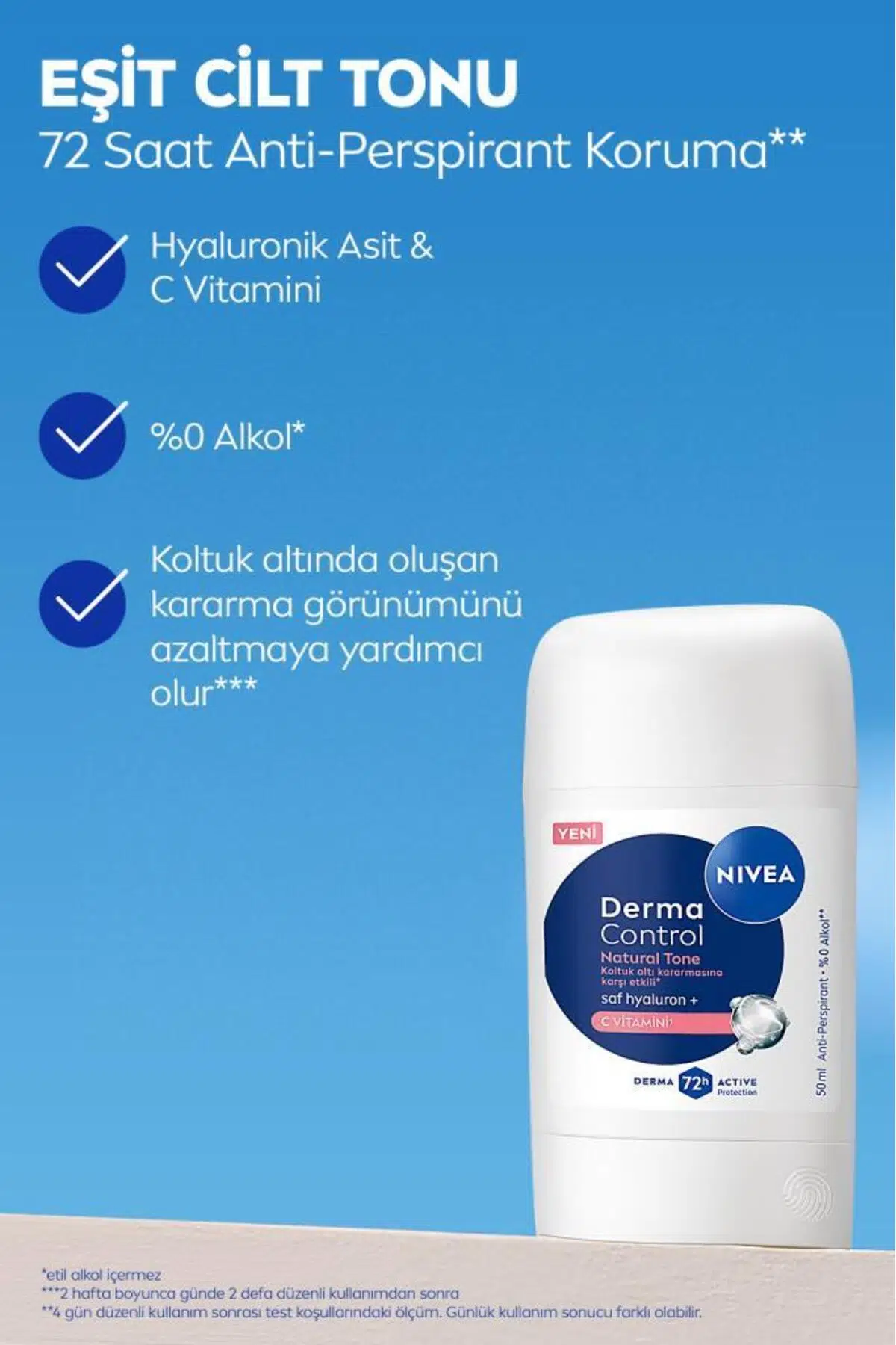 • 110 Yıllık Cilt Bakım Uzmanı NIVEA'dan!• NIVEA Kadın Stick Deodorant Derma Natural Tone 50ml: Saf Hyaluron ve C Vitamini ile geliştirilen formülü daha sıkı bir cilt görünümü sağlar.