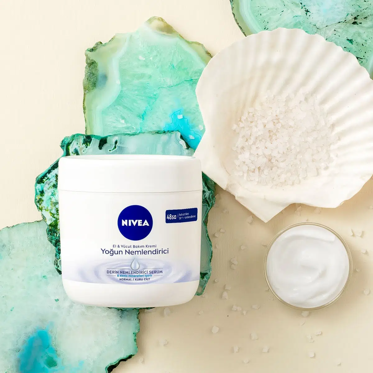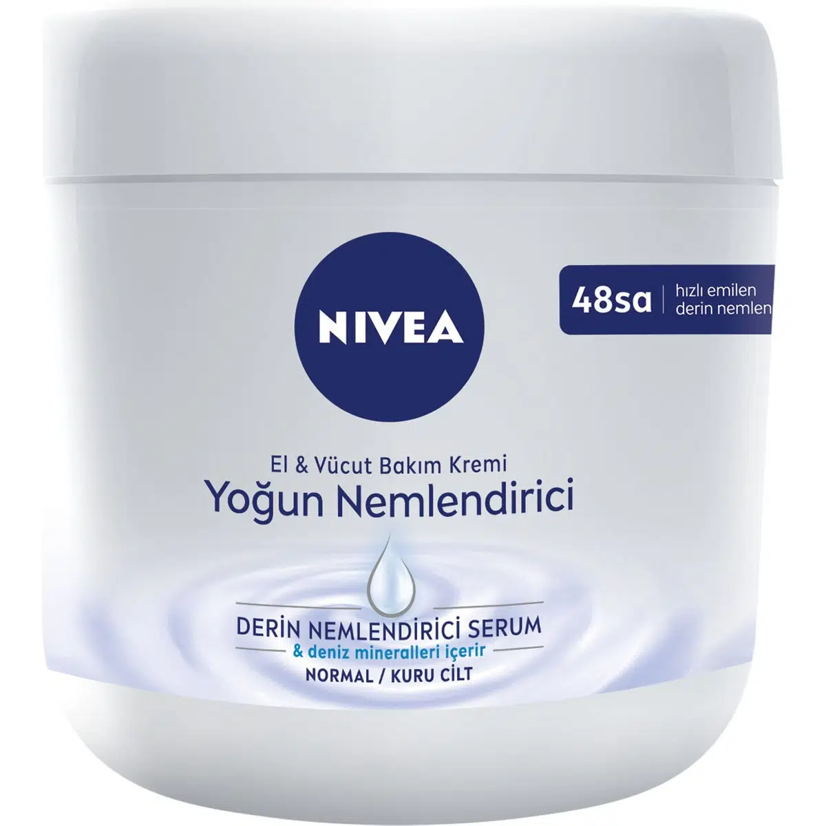 NIVEA El ve Vücut Bakım Kremi Yoğun Nemlendirici Ne İşe Yarar? • NIVEA Yoğun Nemlendirici El ve Vücut Bakım Kremi, nemlendirici serum ve deniz mineralleri içeren formülü ile ilk kullanımdan sonra cildinizi pürüzsüzleştirir. • Hızlı emilen el ve vücut bakım kremi: Yapışkan his vermeyen formülü saniyeler içinde emilir. • 48 Saat derinlenmesine nemlendirme: İlk kullanımdan sonra cildinizi pürüzsüzleştirir ve 48 saat boyunca cildi nemlendirir. • Derin Nemlendirici Serum: Formül nemi cilde hapseder ve fark edilir derecede pürüzsüz bir cilt görünümü sağlar. NIVEA El ve Vücut Bakım Kremi Yoğun Nemlendirici Nasıl Kullanılır? Daha iyi bir cilt için temizlenmiş cildinize günlük olarak masaj yaparak uygulayınız. Hangi Cilt Tipleri İçin Uygundur? Tüm cilt tipleri için uygundur. Size Nasıl Gelecek? NIVEA tarafından kutusu ile birlikte gönderilmektedir. NIVEA El ve Vücut Bakım Kremi Cocoa Butter ile Kişisel Bakım Rutini Nasıl Olmalı? Kişisel Bakım Rutininizin Vazgeçilmezi!: İlk adım olarak NIVEA Creme Soft Banyo ve Duş Jeli ile duş aldıktan sonra Cocoa Butter Nemlendirici Vücut Kremini vücudunuza masaj yaparak kullanabilirsiniz.