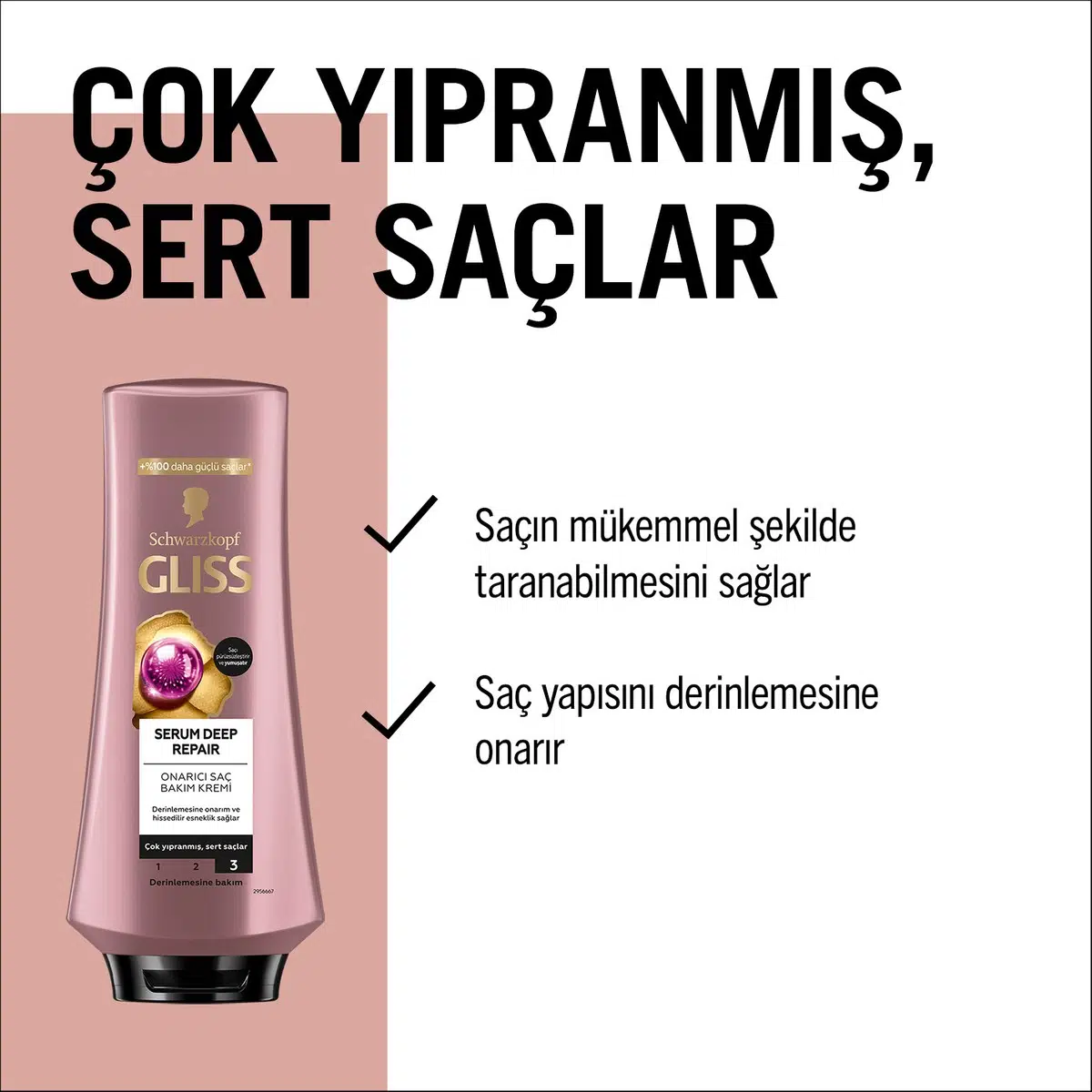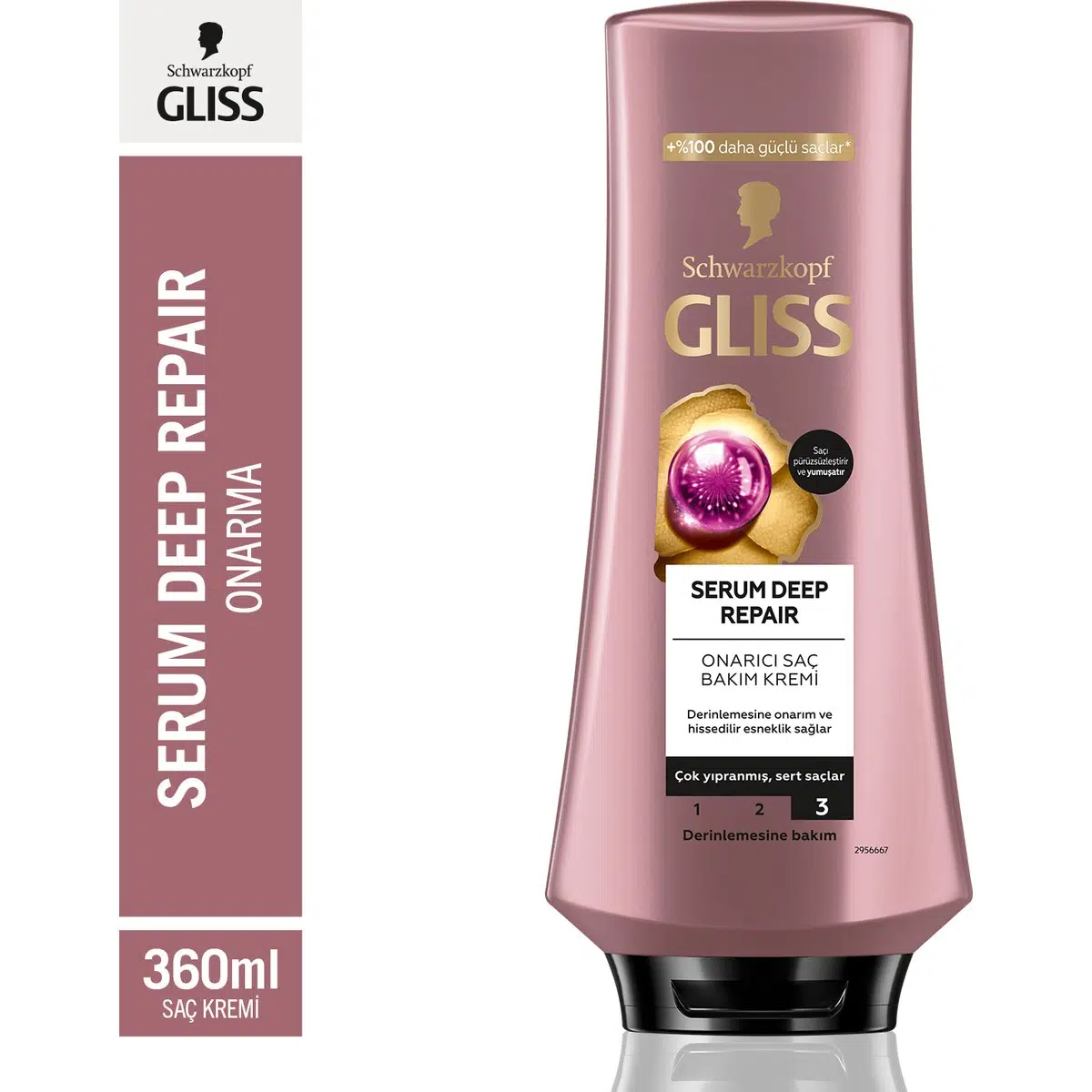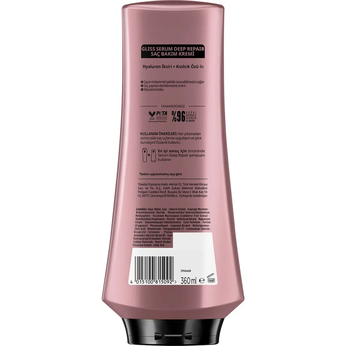 Gliss Serum Deep Repair Hyalüron İksiri & Kızılcık Onarıcı Saç Bakım Kremi 360 ml Yıpranmış Sert Saçlar