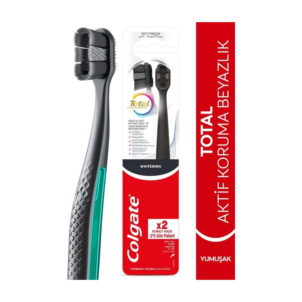 Colgate Total Whitening 1+1 Yumuşak Diş Fırçası(Siyah)