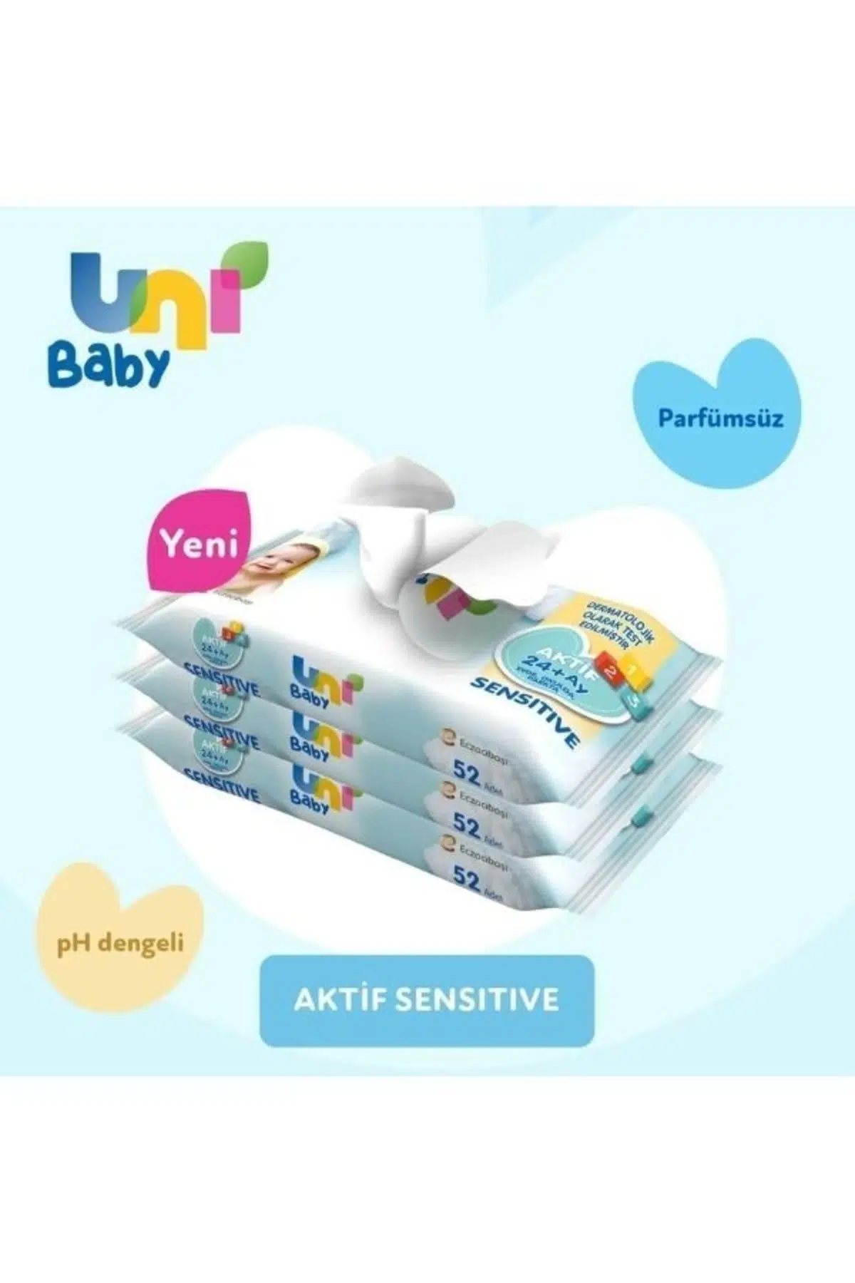 Uni Baby Aktif Sensitive Islak Havlu 3 x 52 li