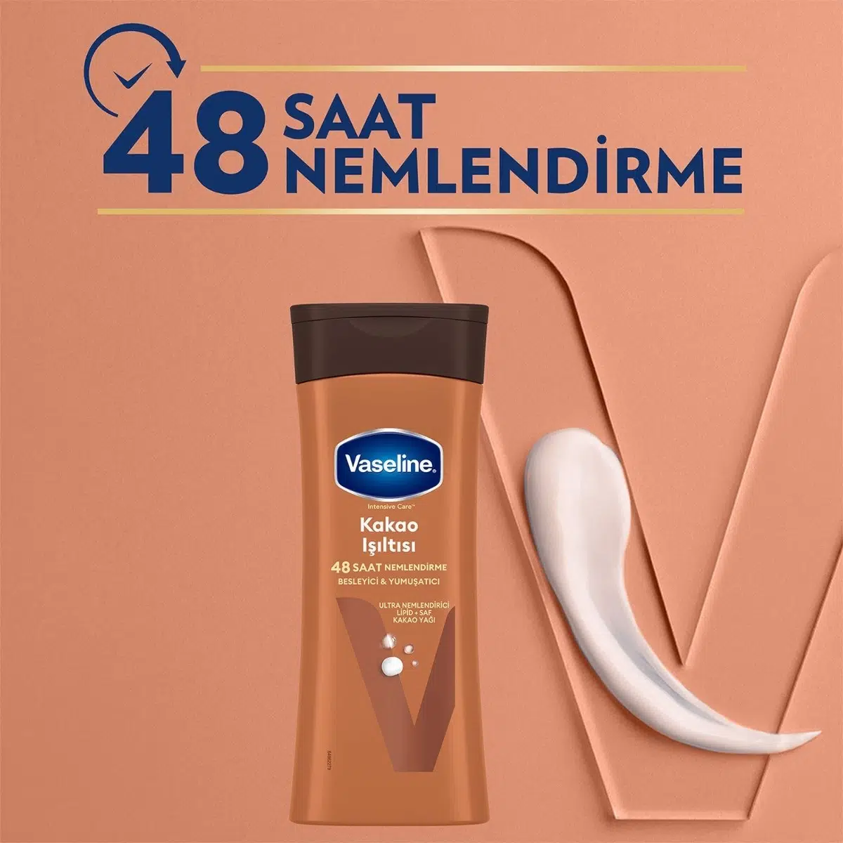 Vaseline Kakao Işıltısı Vücut Losyonu ile tanışmaya hazır mısınız? Adıyla bütünleşmiş bu muhteşem losyon, Ultra Nemlendirici Lipid içeren formülü ile cildinizi 48 boyunca nemlendirirken, saf kakao yağı ile cildinizi besler ve ipeksi bir yumuşaklık sağlar. Seramidler, cildin doğal yapısında bulunan nem koruyucu ve bariyer güçlendirici bileşenlerdir. Kakao Işıltısı Vücut Losyonu, Ultra Nemlendirici Lipid içeren formülü ile ciltteki doğal seramid yapısını içeriden* destekler ve nemlendirerek onarılmasına yardımcı olur. Vaseline Kakao Işıltısı Vücut Losyonu %90’a kadar** daha fazla nem sağlarken cildinizi nemlendirerek onarır. Vaseline Kakao Işıltısı Vücut Losyonu, uygulandığı bölgede hemen emilerek yağlı ve yapışkan bir his bırakmaz. Kullandığınız andan itibaren cildinizi nemlendirir, böylece cildiniz her zaman bakımlı, yumuşak ve ışıl ışıl kalır. Düzenli kullanımda cildinizin daha esnek ve parlak olmasına yardımcı olur. Güzellik ve bakım rutininizin vazgeçilmez bir parçası haline gelecek olan Vaseline Kakao Işıltısı Vücut Losyonu, cildinizin ihtiyaç duyduğu bakımı sağlayarak ona hak ettiği özeni gösterir. • Cildinizi 48 saat boyunca nemlendirir. • Ultra Nemlendirici Lipid içeren formülü ile ciltteki dogal seramid yapısını içeriden* destekler ve nemlendirerek onarılmasına yardımcı olur. • Saf kakao yağı içeren özel formülü cildinizi besler. • Yapışkan ve yağlı his bırakmayan hafif formülü sayesinde cildiniz tarafından anında emilir. • Dermatolojik olarak test edilmiştir. * Stratum Corneum ** Uygulamadan 8 saat sonra, uygulanmamıs cilde kıyasla İçindekiler: Aqua, Petrolatum, Glycerin, Stearic Acid, Isopropyl Palmitate, Glycol Stearate, Dimethicone, Triethanolamine, Glyceryl Stearate, Theobroma Cacao (Cocoa) Seed Butter, Butyrospermum Parkii (Shea) Butter, Cetyl Alcohol, Phenoxyethanol, Methylparaben, Parfum, Magnesium Aluminum Silicate, Carbomer, Propylparaben, Disodium EDTA, Stearamide AMP, Caramel, Maltodextrin, Benzyl Alcohol, Citronellol, Coumarin, Geraniol, Hexyl Cinnamal, Hydroxycitronellal, Linalool.